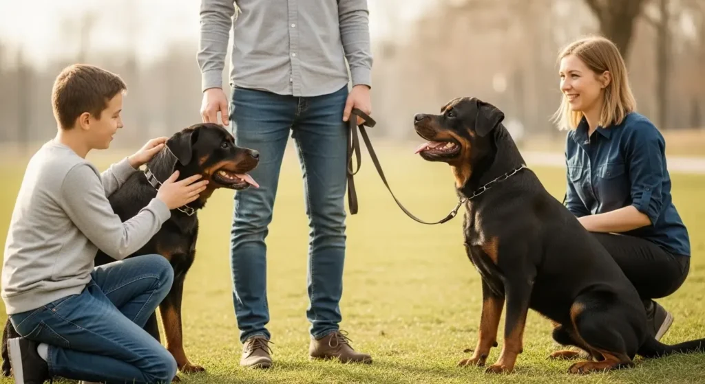 A well-socialized Rottweiler is confident, not reactive. Nervous dogs are the ones that lash out.
